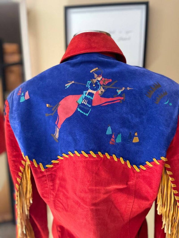 This is a CHAR Santa Fe suede fringe leather jacket in a women’s size small.
